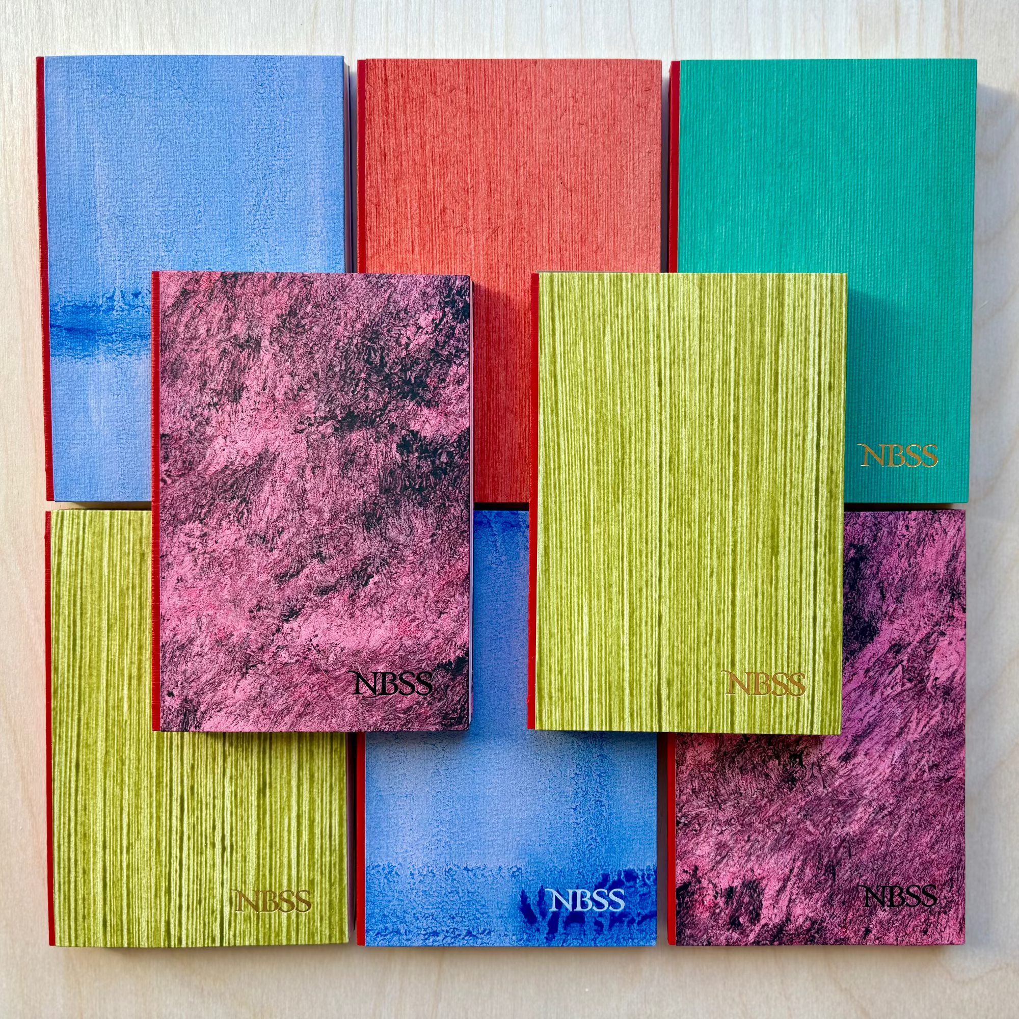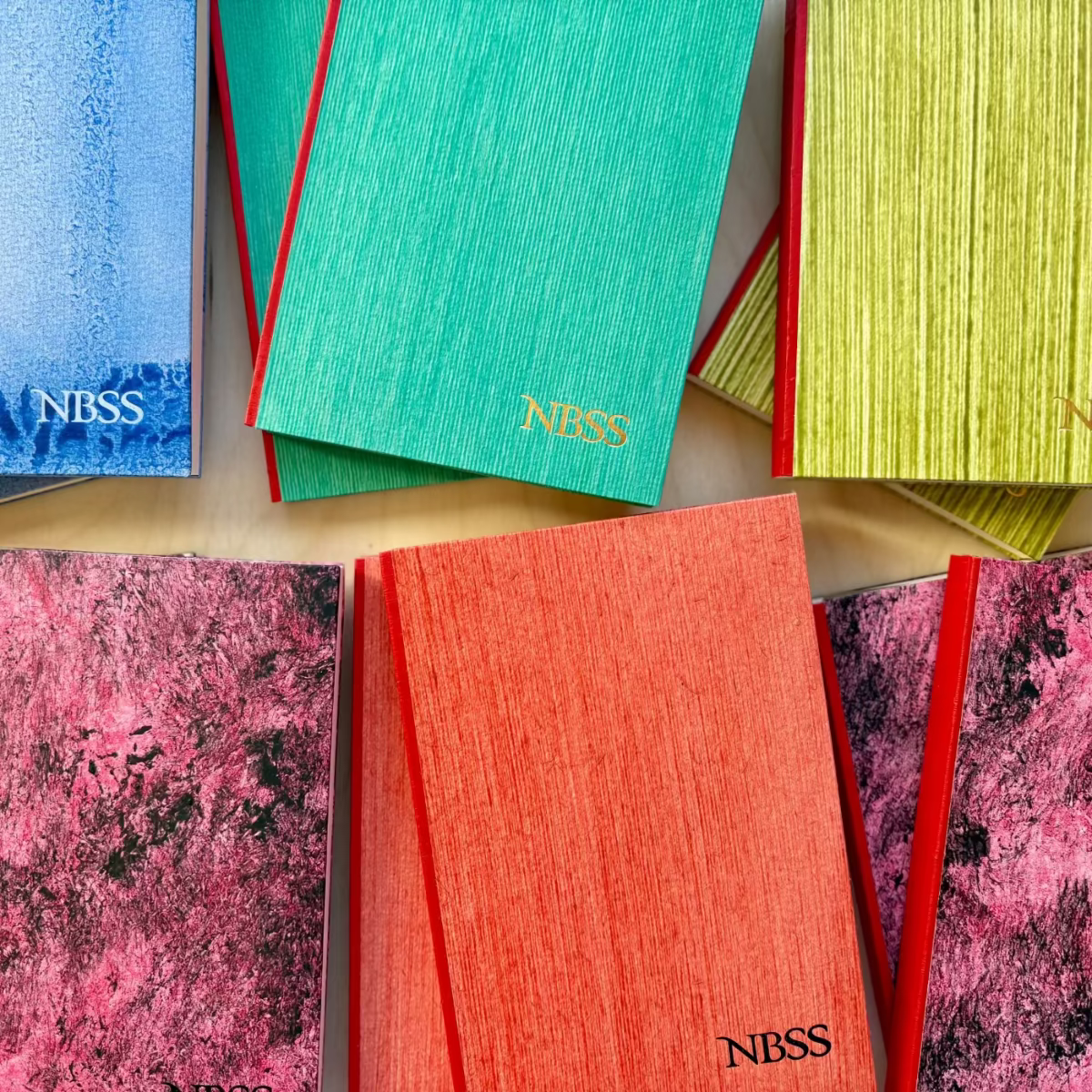 Handmade by NBSS Bookbinders Laura Kraegel BB ’25 and Hanna Rashidi BB ’26, using Paste Papers made by Ash Nunez BB ’25.